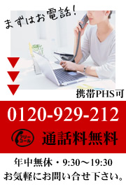 フリーコール0120-929-212 9:30〜19:30 |